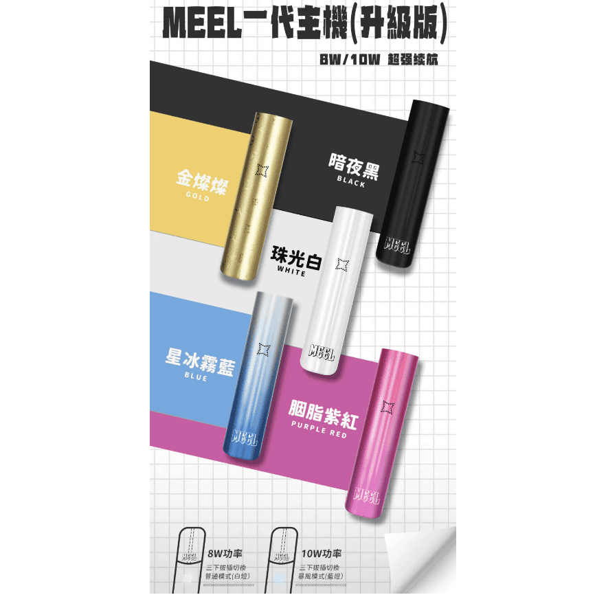 MEEL 主機,作為台灣電子煙市場上的熱門產品,以其通用性、高品質和多樣化的選擇而聞名。它可以通配市面上所有一代煙彈,包括悅刻、SP2S、LANA 和 ILIA 等品牌,讓您擁有更多的選擇,體驗不同的口味和香氣。